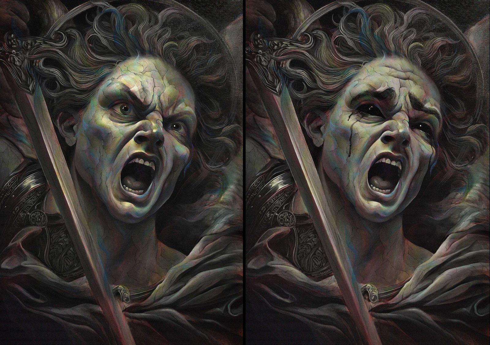 Non una semplice esposizione, ma un vero e proprio atto di alchimia visiva, con tele che “vivono” e si trasformano sotto gli occhi del visitatore. Un viaggio profondo tra mito, critica sociale e introspezione.