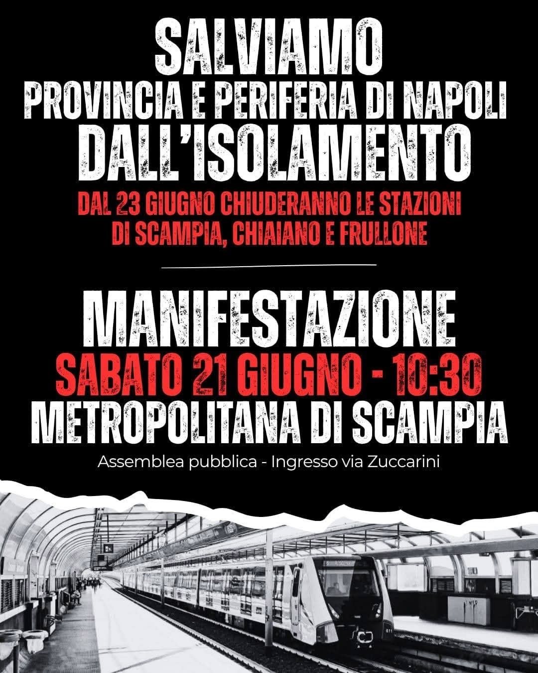 La chiusura delle stazioni di Scampia, Chiaiano e Frullone, prevista dal 23 giugno, ha scatenato la mobilitazione dei cittadini preoccupati per l’isolamento della provincia e della periferia nord  di Napoli.