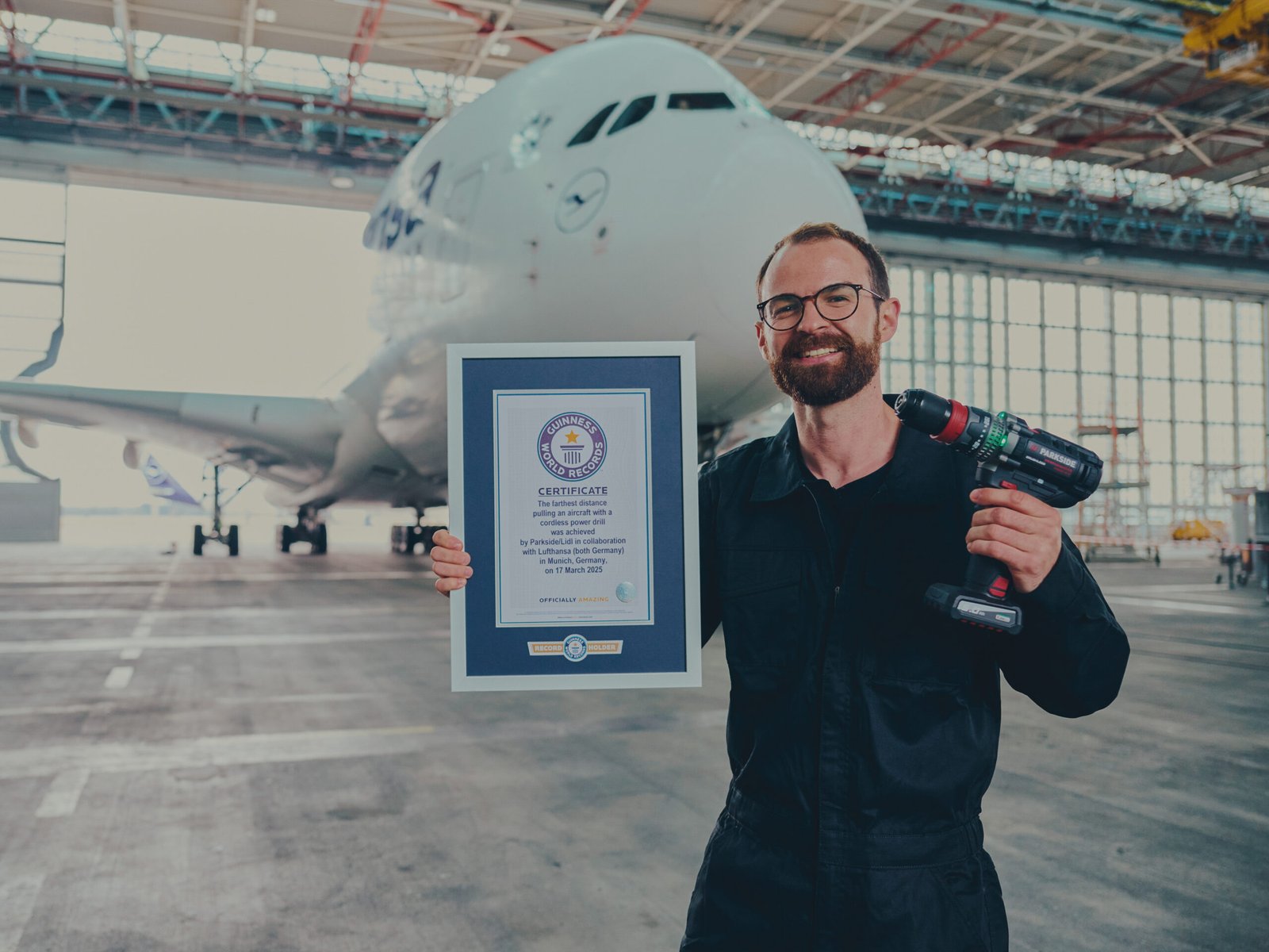 PARKSIDE ha dimostrato in modo eclatante tutta la potenza del nuovo trapano avvitatore a batteria da 12 V “PPBSSA 12 BF24 A1″ della serie Performance nell’hangar di Lufthansa Airlines a Monaco. Sotto lo sguardo attento del giudice GUINNESS WORLD RECORDS™, il trapano PARKSIDE ha trascinato un Airbus A380 di quasi 300 tonnellate, stabilendo un nuovo record mondiale per la distanza più lunga percorsa trainando un aereo con un trapano a batteria. Un’impresa che non solo ha conquistato la community del fai-da-te, ma che regala a PARKSIDE un posto nella storia dei GUINNESS WORLD RECORDS.