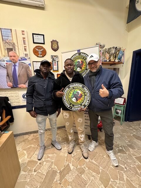 La presentazione delle due nuove Guardie Giurate scappate dalla guerra e’ stata effettuata presso la sede dell’ Angpg a Miano nella settima municipalità in via Cupa Capodichino 85 alla Presenza del Presidente Dott.Giuseppe Alviti che ha rimarcato come il futuro delle guardie giurate siano rivolte verso la manodopera proveniente dall’Africa validamente formata e addestrata.