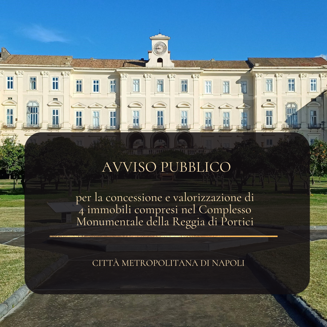 La Città Metropolitana di Napoli ha indetto un avviso pubblico per la concessione di quattro immobili di pregio storico-artistico situati nel complesso monumentale della Reggia di Portici. L’iniziativa si inserisce in un progetto complessivo di valorizzazione della Reggia già avviato anni fa, che ha visto l’assegnazione di altri immobili per attività produttive (progetto “Le botteghe del Re”), e l’esaltazione della funzione museale del sito anche attraverso l’organizzazione di mostre.