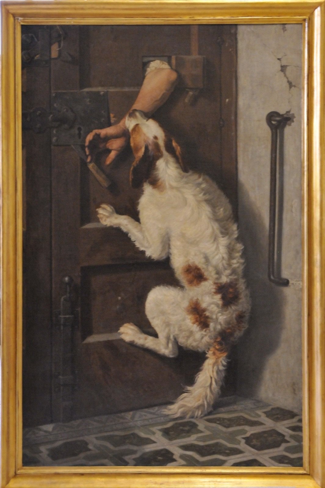 La mano del ladro, invece, fu presentato alla Promotrice del 1864 con una esposizione che ne evidenziava l’originalità del soggetto e la grandezza del ‘vero’. Ritrae una scena di vita quotidiana: una porta chiusa e un cane che tenta di mordere la mano del ladro infilata nello sportellino. E’ sicuramente una delle più antiche acquisizioni artistiche dell’amministrazione provinciale di Napoli.