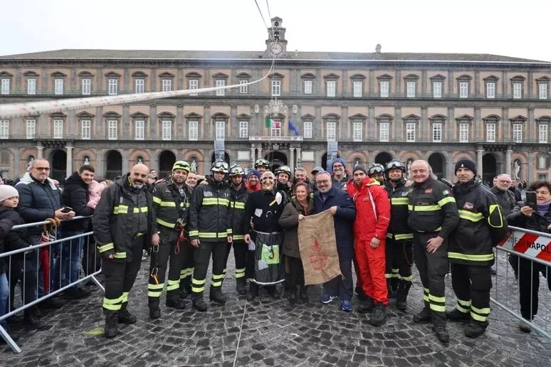 Ringrazio di cuore i Vigili del fuoco che, anno dopo anno, si rendono disponibili eroicamente e anche molto gioiosamente a compiere questo bel volo. È un momento di grande gioia per i bambini. Abbiamo una città ancora piena di turisti e qualcuno si tratterrà fino a domani: 447.000 turisti per 3 notti e 553.000 per 4 notti. Ieri sera si è conclusa con grande successo l’Epifania a Piazza Mercato – 60.000 presenze in tre giorni di Fiera della Calza e del Giocattolo – che abbiamo ripristinato da 4 anni e abbiamo avuto anche una bellissima sorpresa: Geolier, con la fidanzata Chiara Frattesi, ha scelto piazza del Carmine per la calza e ha postato sui social la sua passeggiata tra le nostre casette. Anno dopo anno, proponiamo una programmazione di eventi sempre più diffusi nel territorio cittadino, sempre più eterogenea e credo che sia una programmazione che incontra molto anche il gusto dei turisti.