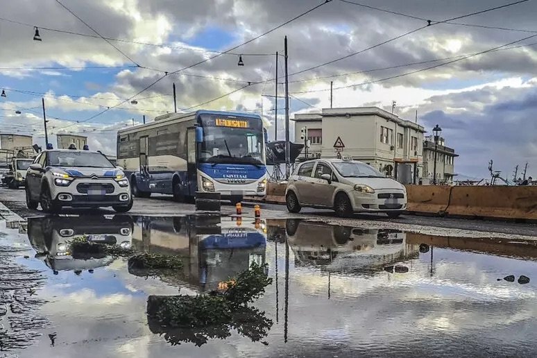 Su via Acton, l’arteria che collega via Marina alla Riviera di Chiaia attraversando il Tunnel della Vittoria, decine di buche costringono gli automobilisti a ridurre al minimo la velocità per evitarle mentre in un altro punto la carreggiata allagata è presidiata da un’auto della Polizia Municipale che devia il traffico su una sola corsia.