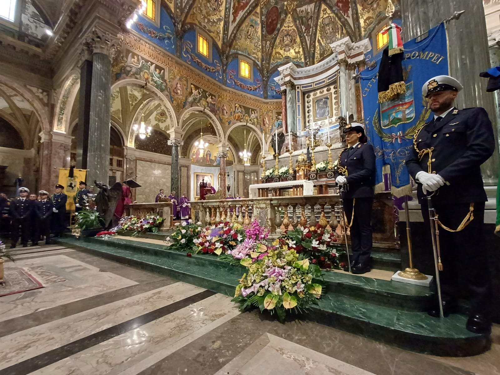 Il gonfalone della Città Metropolitana ha accompagnato il feretro durante la cerimonia, insieme a quello della Città di Pompei.