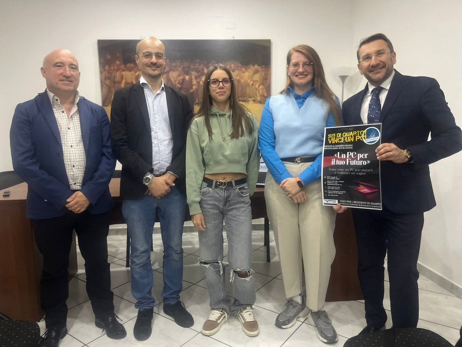 Si è conclusa con grande entusiasmo la cerimonia di premiazione dell’evento “Un PC per il tuo futuro”, promosso dall’APS De Amicitia, che ha visto la partecipazione di cittadini, giovani e famiglie unite dal desiderio di credere nella forza della cultura come strumento di riscatto e crescita.