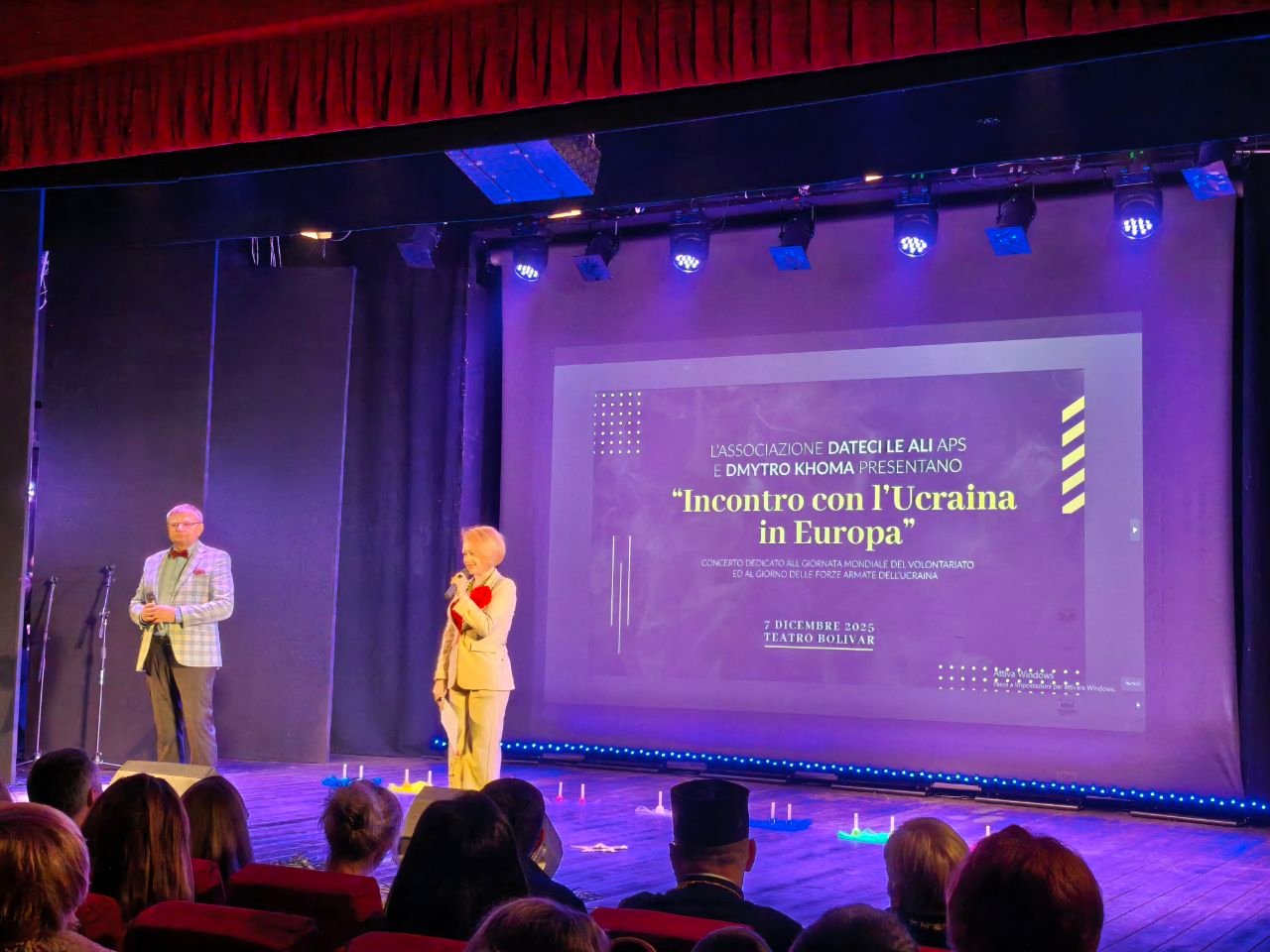 Teatro pieno per il concerto di Natale dedicato alla comunità ucraina della Campania, organizzato dall’associazione Dateci Le Ali APS, in collaborazione con Dmytro Khoma. La quinta edizione di “Incontro con l’Ucraina in Europa”, iniziativa di beneficenza dedicata alla costruzione di ponti culturali e umanitari tra Italia e comunità ucraina, quest’anno era dedicata alla Giornata Mondiale del Volontariato e al Giorno delle Forze Armate dell’Ucraina, rendendo omaggio al ruolo dei volontari, ai legami di solidarietà e alla resistenza civile in tempo di guerra.