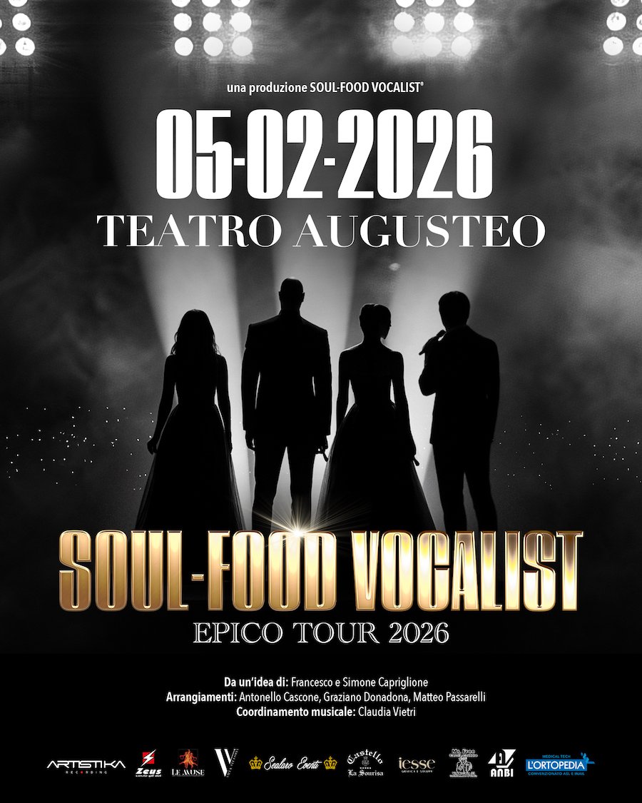 Giovedì 5 febbraio ore 21, sul palco del teatro Augusteo di Napoli, Piazzetta duca d’Aosta 263, saranno protagonisti i Soul-Food Vocalist, per l’Epico Tour 2026.