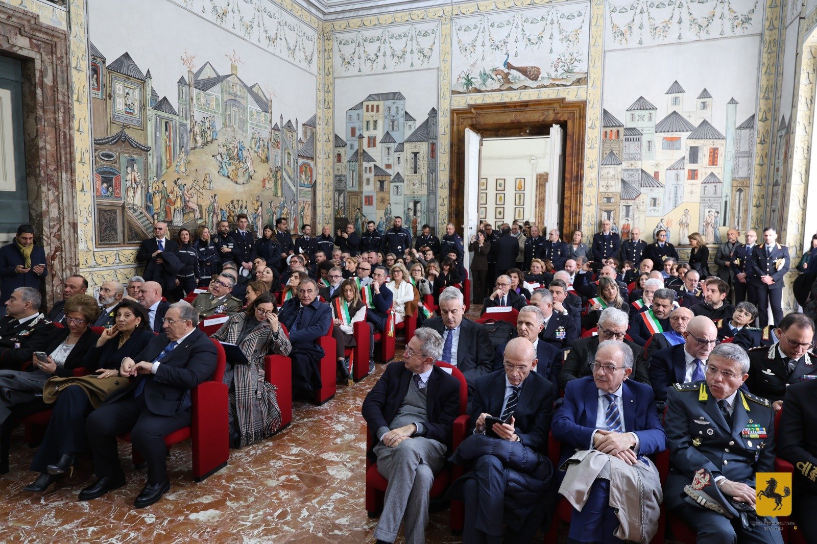 Si è tenuta oggi presso la Sala Cinese della Reggia di Portici la cerimonia di consegna degli attestati di formazione del corso “Misure di contrasto al fenomeno Terra dei Fuochi”, organizzato dal Prefetto di Napoli Michele di Bari, in collaborazione con la Città Metropolitana di Napoli. Presenti anche il Prefetto di Benevento Raffaela Moscarella e il Prefetto di Caserta Lucia Volpe, insieme ai più alti rappresentanti delle forze dell’ordine impegnati nel contrasto al fenomeno della Terra dei Fuochi.