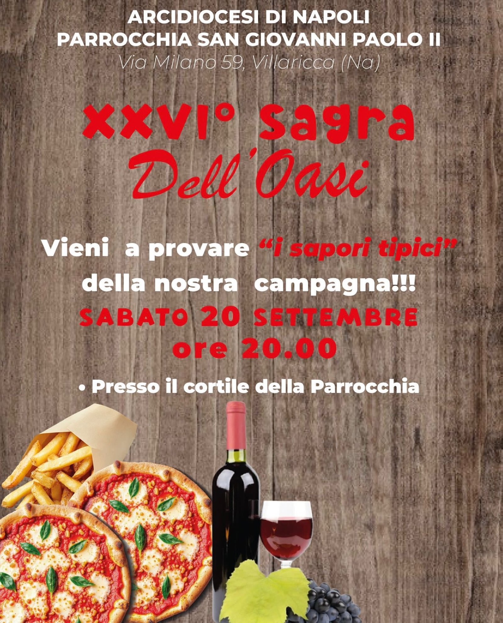 Villaricca: La comunità di San Giovanni Paolo II è in festa. Come ogni anno si ripete la famosa sagra che ripropone i sapori autentici, quelli che da sempre hanno “fatto crescere” generazioni di ragazzi tra sorrisi e giornate spensierate . Non so può mancare ad un evento del genere che tra un bicchiere di vino ed un panino regala tanta felicità!